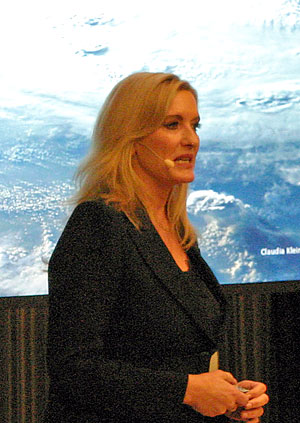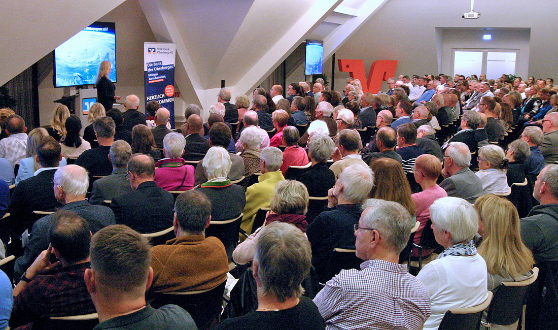 Vor mehr als 300 Zuhörern hielt Claudia Kleinert, die Wetterexpertin der Tagesschau, einen Vortrag zum Thema "Klimawandel - Bedrohung und Chance". Die Veranstaltung fand im Rahmen der "GalerieGespräche" im Forum der Volksbank Oberberg statt.