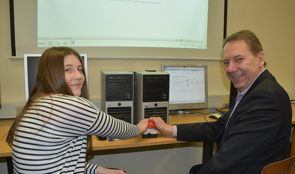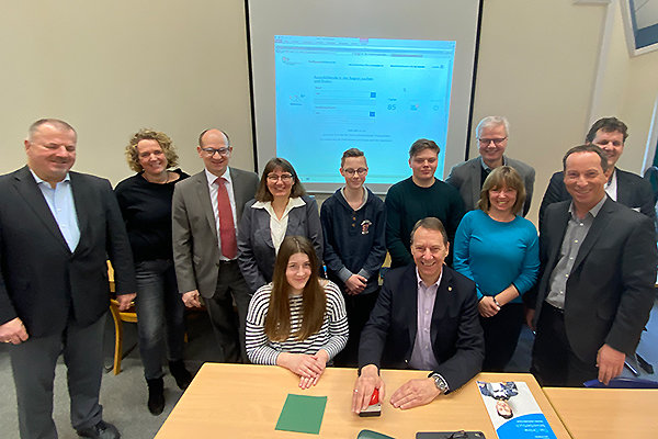 Die Federführung bei der Umsetzung beim neuen „Online-Bewerberbuch“ hatte der Oberbergische Kreis mit seiner Koordinierungsstelle für den Übergang von Schule Beruf und Studium (KaoA). Beteiligt sind aber viele weitere einschlägige Institutionen aus Wirtschaft und Mittelstand sowie selbstverständlich die möglichen künftigen „Nutznießer“ des Ganzen, Schüler und Unternehmer. Dementsprechend groß war heute Morgen der Kreis der Vertreter, die in den Räumen der Gesamtschule Marienheide den Startschuss für das neue Online-Angebot gaben, Landrat Jochen Hagt drückte symbolisch mit der Schülerin Paula Sophie Röttger den Startknopf, gleichzeitig wurde das neue Angebot im weltweiten Netz freigeschaltet.