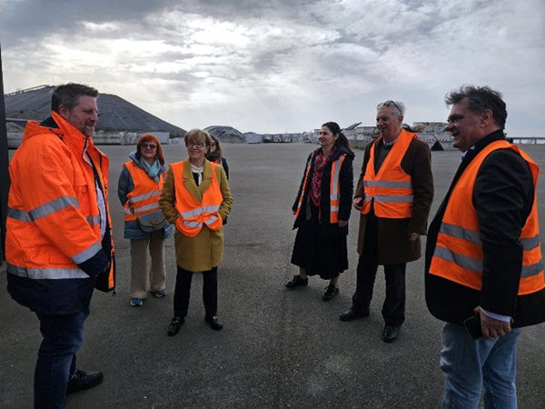 Am Vormittag traf sich die Gruppe auf :metabolon in Lindlar, wo Prof. Dr. Wolf zu aktuellen Forschungsthemen informierte und den Gästen die vorhandene Infrastruktur demonstrierte. Anschließend führten Prof. Markus Nöldgen, Dekan der Fakultät für Bauingenieurwesen und Umwelttechnik, und Prof. Dr. Ansgar Neuenhofer, Institutsdirektor für Konstruktiven Ingenieurbau, die siebenköpfige Gruppe durch das Baustofflabor der TH Köln am Standort Deutz.