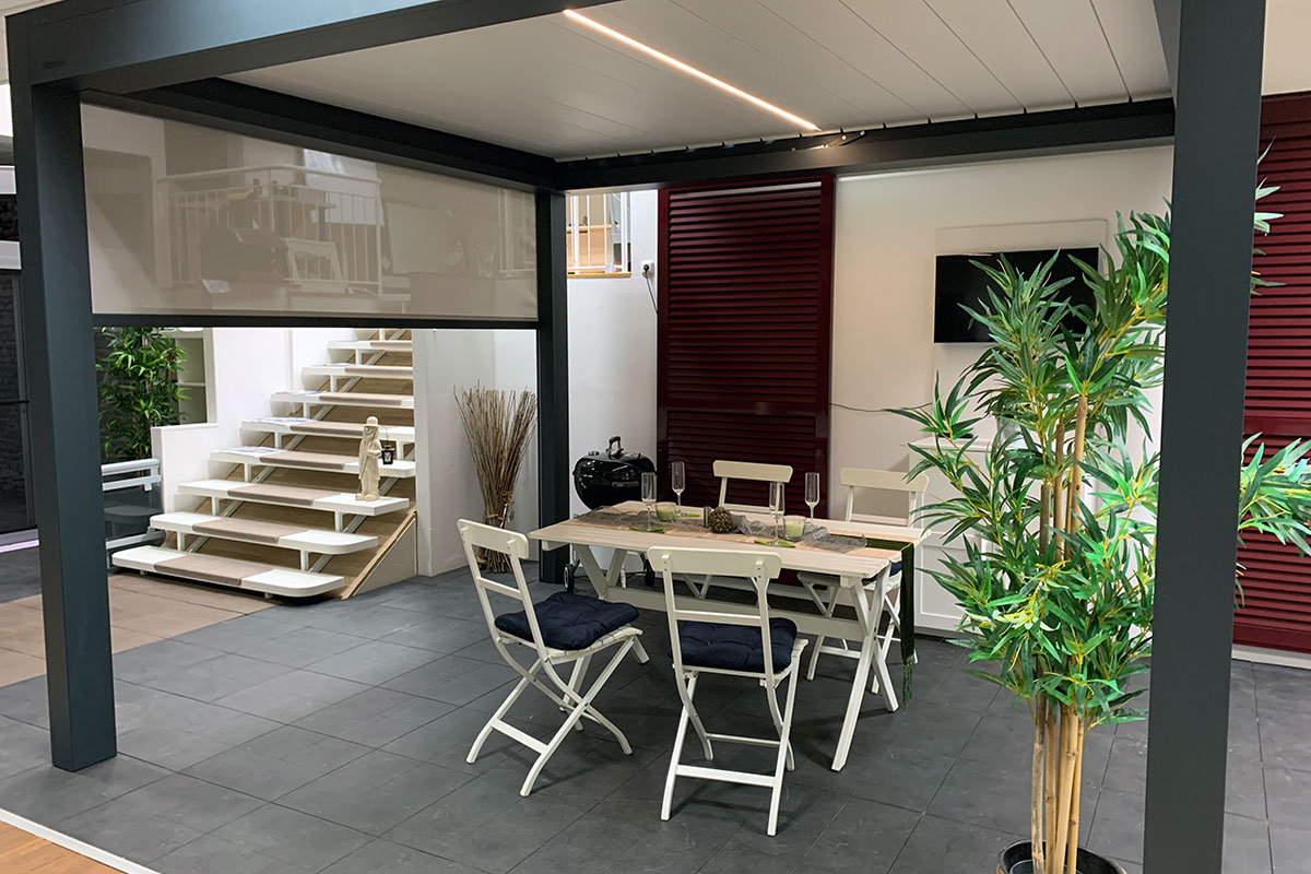 Auch neue Trends sollen nicht verschlafen werden. So finden sich neben den klassischen Überdachungen, die allesamt auf Maß gefertigt werden, in den Ausstellungsräumlichkeiten auch hochmoderne Lamellendächer, die nach einem kurzen Knopfdruck wie von Geisterhand den Blick gen Himmel freigeben.