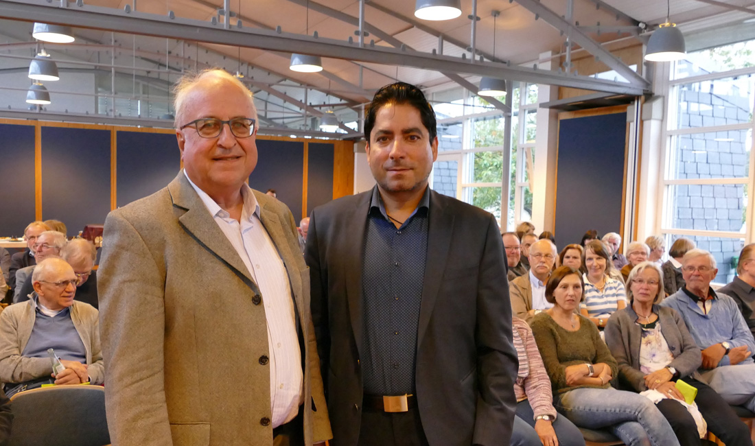 Eine intensive Diskussion erlebten die mehr als 100 Gäste im Oberwiehler Paul-Schneider-Haus, zu dem der Evangelische Kirchenkreis An der Agger und die Evangelische Akademie im Rheinland eingeladen hatten. In einem Gesprächsabend haben sich der Islamwissenschaftler Prof. Dr. Mouhanad Khorchide und der Autor und katholische Priester i.R. Hermann-Josef Frisch über Gründe und Lösungen für Konflikte zwischen den Religionen ausgetauscht. Das Motto der Interkulturellen Woche „Zusammen leben – zusammen wachsen“ untermauerten sie mit wissenschaftlich fundierten Erkenntnissen aus dem Bibel- und dem Koranstudium sowie aus der Geschichte beider Religionen.