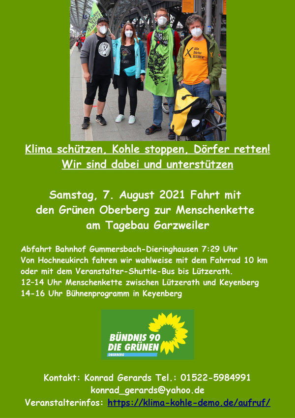 Oberberg - Die Grünen fahren am 7. August zum Braunkohle-Tagebau und beteiligen sich dort an einer Menschenkette.