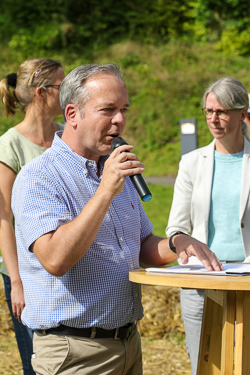 [Klaus Grootens betonte in seiner Ansprache die Wichtigkeit des diesjährigen Mottos „Grünland oder Steppe“ für das Oberbergische.]