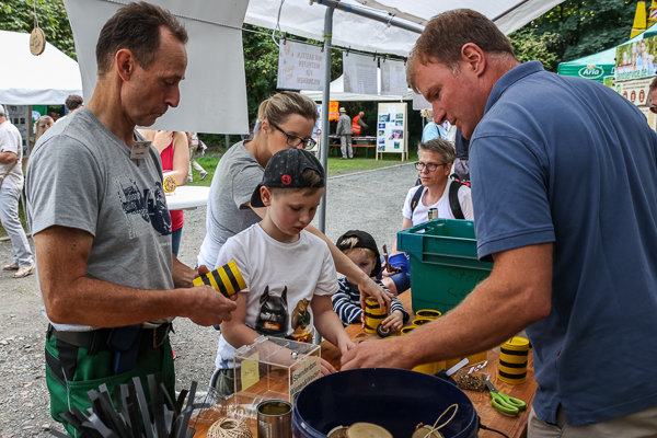 Eine weitere spannende Station waren die Nisthilfen für Wildbienen, die von Jörg Lob von der BSO angeboten wurden. Hier hatten insbesondere Kinder großen Spaß dabei, kleine Insektenhotels in Form von Bienen zu bauen, die in Zukunft für ihren Schutz sorgen sollen. Auch die Landtechnik von Timo Meier präsentierte bei ihren Live-Mähaktionen eine besonders insektenfreundliche Mähweise und klärte gemeinsam mit dem Projekt „Kids save Kitz“ über Maßnahmen zum Tierschutz auf.
