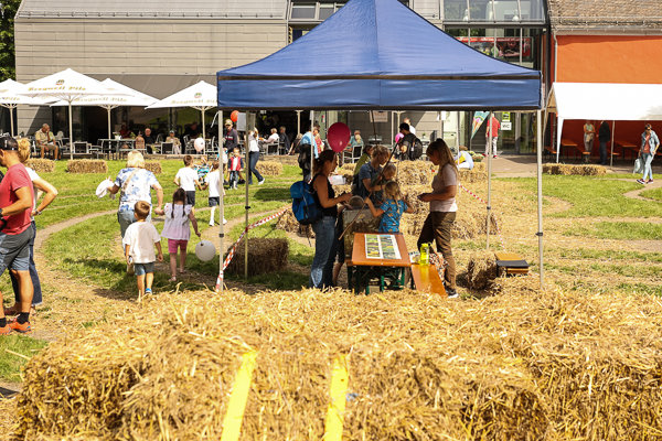 Ein besonderes Highlight war der „SDG-Hindernisparcours“ der Bergischen Agentur für Kulturlandschaft (BAK). Cornelia Lösche von der BAK erklärte, dass die Kinder beim Überwinden der Hindernisse aus Stroh fünf der 17 Nachhaltigkeitsthemen spielerisch kennenlernen konnten. Diese Themen reichten von Geschlechtergleichheit über Wassersauberkeit bis hin zur Armutsminderung. Am Ende konnten die jungen Teilnehmer ihr neu erworbenes Wissen unter Beweis stellen und erhielten Saatguttütchen.