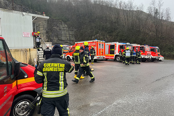 Seit etwa 13:30 Uhr läuft ein Einsatz der Bergneustädter Feuerwehr und des Bergneustädter THW auf dem Gelände des Steinbruchs Clemens. Dieses ist voller Wasser gelaufen. Ursache dafür ist vermutlich, dass eine von zwei stationären Pumpen, die sich eigentlich um die Entwässerung kümmern, aus unbekannten Gründen ausgefallen ist, wie die Feuerwehr vor Ort mitteilte. Das THW hat nun eine sogenannte Hannibalpumpe mit zwei 150mm-Schläuchen installiert, um das Wasser abzupumpen. Darüber hinaus wurden zwei noch leistungsstärkere Pumpen in Bergisch Gladbach und Olpe angefordert. Mit diesen soll das Wasser bis in die Agger gepumpt werden. Der Einsatz dauert an.