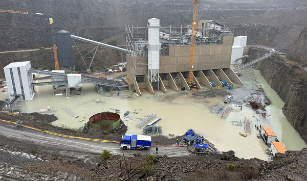 Im Dauereinsatz sind Feuerwehr und THW seit Montagmittag im Steinbruch Clemens, nachdem dort das Baufeld einer neuen Brecheranlage offenbar wegen des Ausfalls einer stationären Pumpe vollgelaufen war (siehe auch Meldung 4). Unterstützt wurden die Kräfte aus Bergneustadt und Gummersbach von Feuerwehren aus Olpe und Bergisch Gladbach, die über so genannte HFS-Systeme (Hytrans Fire System) verfügen, die pro Minute etwa 8.000 Liter Wasser abpumpen können. Ebenfalls war eine Hochleistungspumpe des THW im Einsatz.