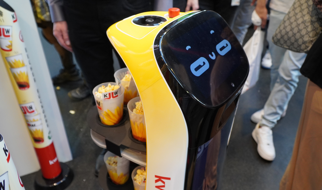 Oberberg - Personal-Recruiting mal anders - Hightech-Roboter serviert Messebesuchern frisches Popcorn.