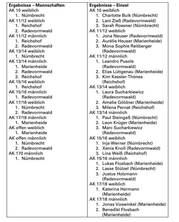 Insgesamt elf Mannschaften sowie zehn Einzelathleten qualifizierten sich für die Landesmeisterschaften im Rettungssport, die am 13. und 14. Juni in Bedburg stattfinden. Weitere Qualifikationen sind über die Punktewertung möglich. Darüber hinaus erreichten Katerina Hermann und Jonas Voswinkel insgesamt fünf Qualifikationszeiten für die Deutschen Einzelstrecken-Meisterschaften, die im Mai in Düsseldorf ausgetragen werden.
