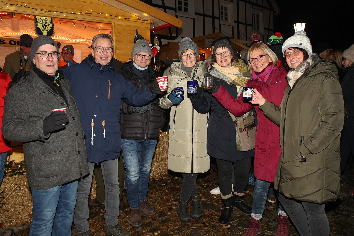 Seit Tagen hatten die Bergneustädter dem Nikolausmarkt am Heimatmuseum in der Altstadt entgegengefiebert – schließlich mussten sie - coronabedingt – seit mehreren Jahren auf die vorweihnachtliche Atmosphäre im schmucken Ambiente der Fachwerkhäuser, der ausschließlich von Vereinen, Schulen, Kindergärten und Bürgern aus der „Feste“ gestaltet wird, verzichten. Bei einer Tasse Glühwein und Leckereien wie „Riiwekauken“ genossen viele Gäste bereits am Freitagabend nach der offiziellen Eröffnung des Markts ein paar schöne Stunden in vorweihnachtlicher Atmosphäre. Besonders beliebt waren die Angebote der Museumsschmiede an „Nystädter Schmiedewasser“ wie der heiße „Alpenglüher“, der seinen Namen dem „Sahnehäubchen“ verdankt.