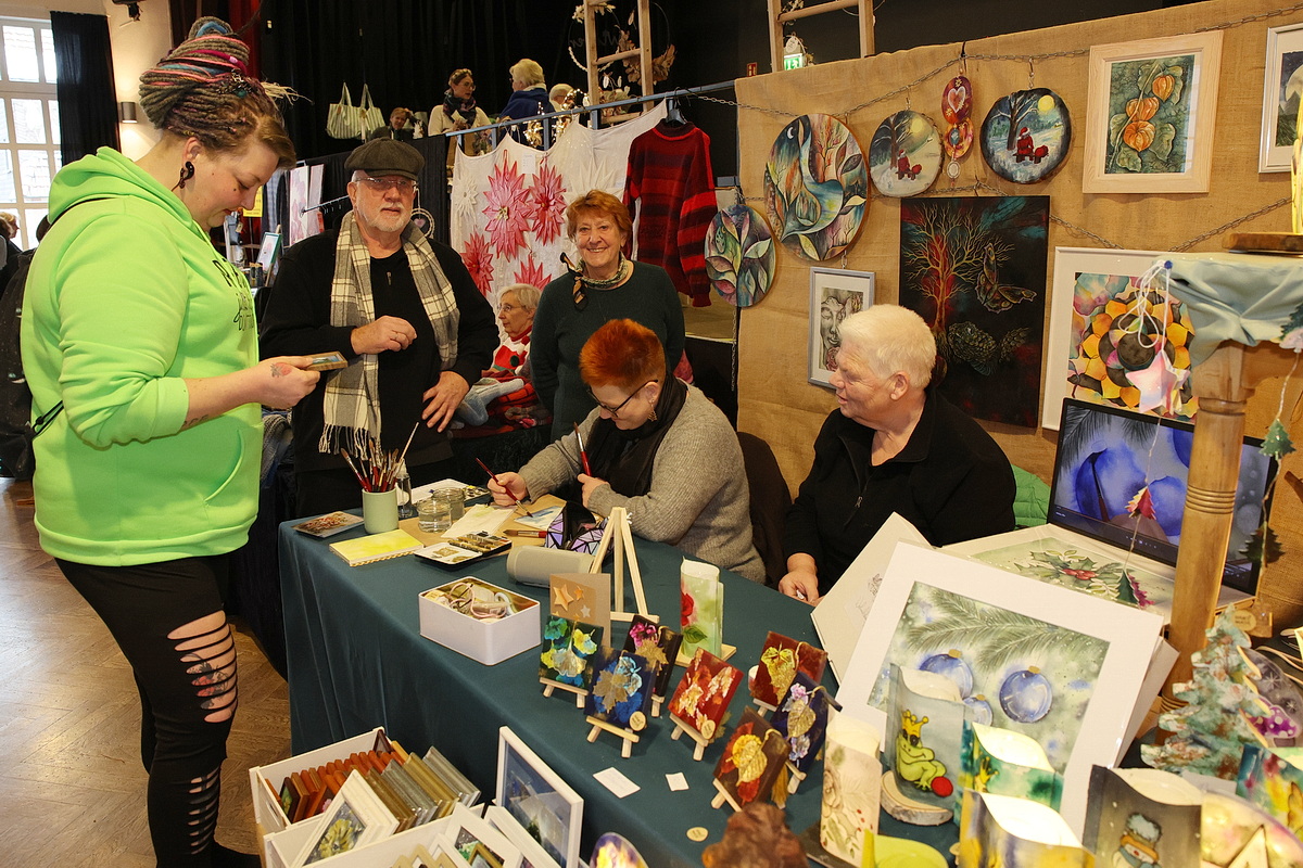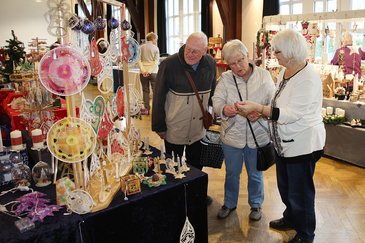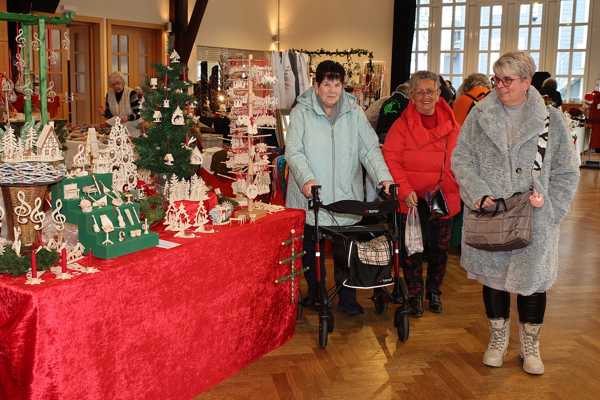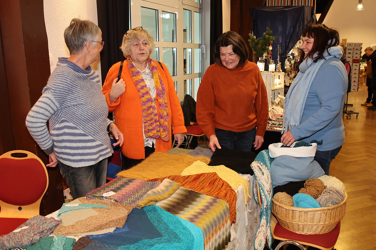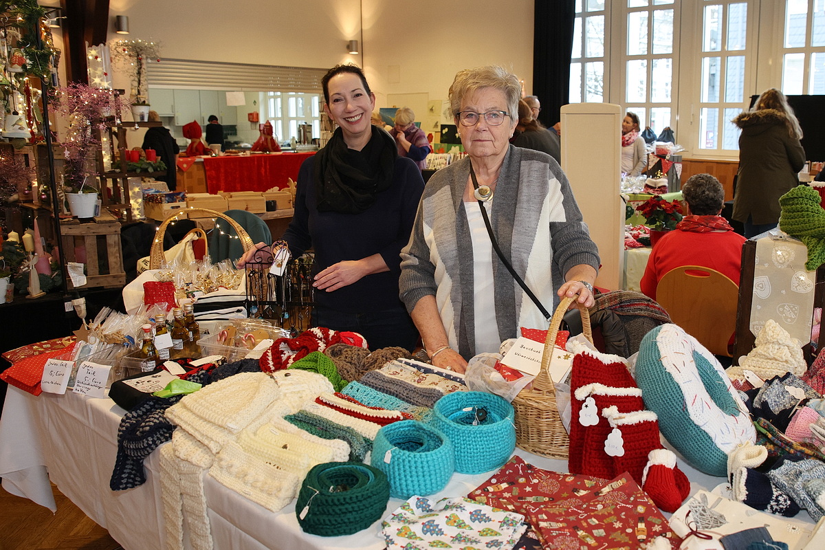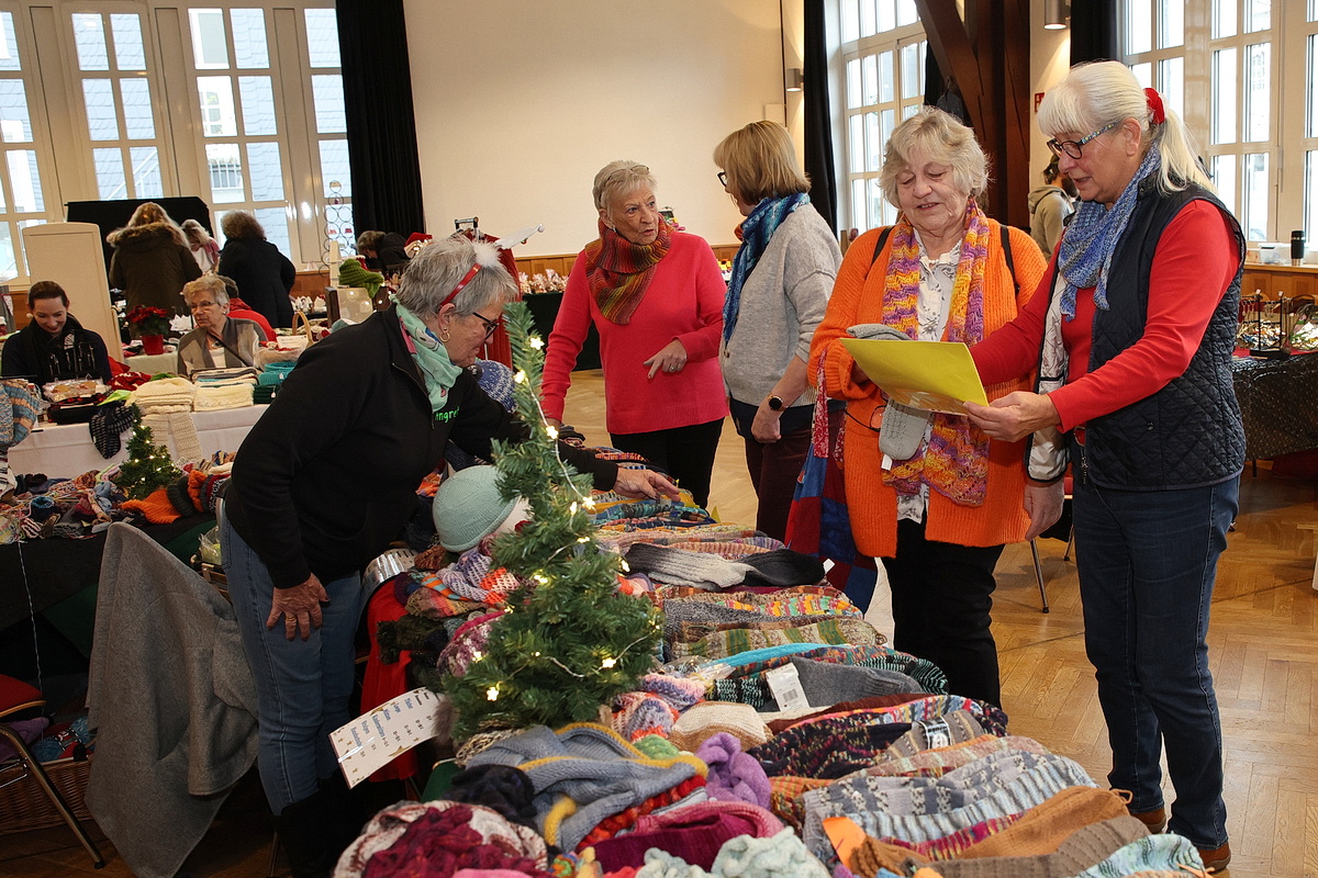 Mit dabei ist auch die „Strickgruppe für den guten Zweck“ des Förderkreises, eine Gruppe engagierter Frauen, deren Arbeiten rein für karitative Zwecke verkauft werden. Gestrickte Mützen, Schals und Socken waren angesichts der frostigen Temperasturen der Renner. „Wir haben viele neue Aussteller, andere haben aus Altersgründen aufgehört“, erklärte der Ehrenvorsitzende des Förderkreises, Michael Klaka. „So haben wir auch ein bisschen Abwechslung, was unsere Besucher und Stammkunden neugierig macht.“ Nach 30 Jahren als Organisator des Marktes gibt Klaka die Verantwortung künftig in jüngere Hände. Am morgigen Sonntag ist der Krawinkelsaal von 11 bis 18 Uhr geöffnet. (mkj)