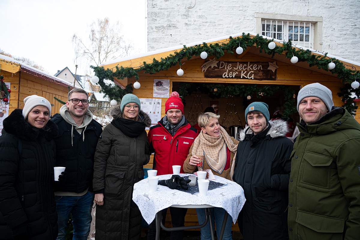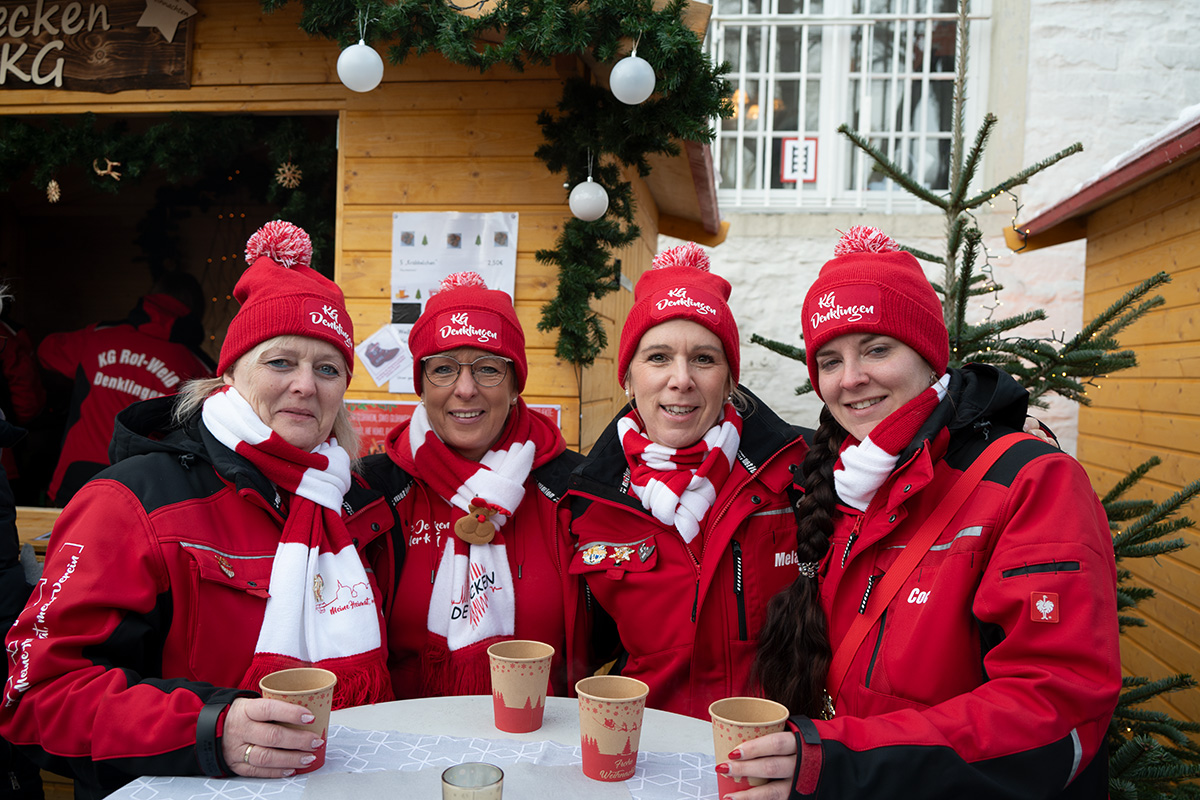 [Vertreter der Waldbröler Karnevalsgesellschaft mit Prinzessin Paula I. aus dem Hause Simon in ihrer Mitte, versorgten die Besucher des Weihnachtsmarktes mit heißen Getränken.]