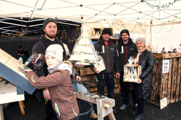 Mit einer absolut außergewöhnlichen Weihnachtsmarkt-Mitmach-Werkstatt bereicherte die Belegschaft der Waldbröler Firma „Bedachungen, Schreinerei und Holzbau Block“ die Marktbesucher. Fertige Holzbau-Sätze für Nistkästen oder Adventsbäume konnten entweder „to go“ erstanden oder unter fachkundiger Anleitung der erfahrenen Schreiner und Zimmerleute vor Ort zusammengeschraubt werden. Genau wie die Einnahmen aus dem Verkauf von Schieferuntersetzern, Metallrosetten und beleuchteten Deko-Landschaften im Kastenrahmen war die, vom Block-Team vorgefertigte, „Vogelfutterhaus-Villa“ als Spende für das Kinderhospiz Balthasar in Olpe vorgesehen. Am Abschluss der „Bauarbeiten“ konnten sich die Marktbesucher in der Zurichtung der Dachschiefer und deren Befestigung auf dem Häuschen beteiligen. „Die Idee sich hier präsentieren hatten unsere Mitarbeiter beim gemeinschaftlichen Grillen im Sommer und wir unterstützen sie gern“, unterstrich Inna Block, die die Firma mit Ehemann Andreas leitet. (us)