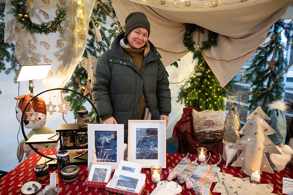 [Die gebürtige Norwegerin Görill Vimal Gabrielsen lebt in Oberberg und bot an ihrem Stand selbst gefertigtes Kunsthandwerk an.]