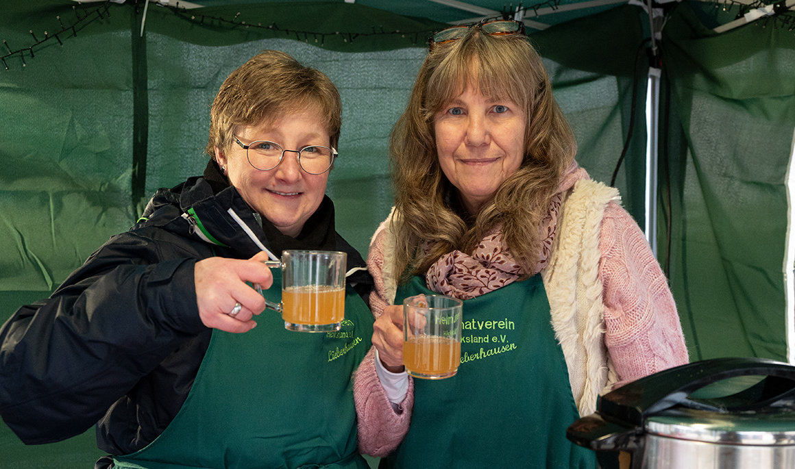 Aber auch rund um die „Bonte Kerke“ erschallte anschließend bis in die Dämmerung Musik – der Fanfarenzug Lieberhausen, der Bläserkreis Bergneustadt und der MGV Lantenbach sorgten für vorweihnachtliche Klänge. Die Vereine brachten sich gut ein beim Fest. Knusprig braune Reibekuchen mit Apfelmus bereitete der Schützenverein zu. Glühwein oder Apfelpunsch oder andere nicht alkoholische und alkoholische Getränke und eine Riesenauswahl für das leibliche Wohl bot nicht nur der Heimatverein Lieberhausen an.