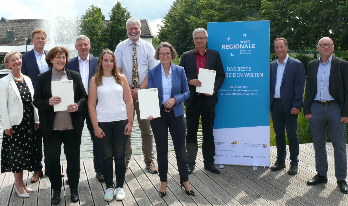 Bürgermeister Hilko Redenius stand die Freude ins Gesicht geschrieben: „Heute ist ein superschöner Tag für Nümbrecht und seine Außenorte", sagte er beim Besuch der NRW-Ministerin für Heimat, Kommunales, Bau und Gleichstellung, Ina Scharrenbach. Sie hatte Förderbescheide für die Gemeinde in der Tasche. Mit ihrem durchdachten Konzept im Rahmen des umfangreichen Bauvorhabens InHK Nümbrecht 2.0 "Lebendige Zentren", das bereits durch den A-Stempel der Regionale 2025 qualifiziert wurde, überzeugten die Gemeindeplaner auch die Bundes- und Landesregierung, die sich mit rund 4,1 Millionen an der Umgestaltung im Hauptort beteiligen.