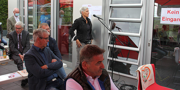 Rund 50 Gäste hatten es sich trotz milder Temperaturen auf der Terrasse bequem gemacht. Unter ihnen waren neben Landrat Jochen Hagt, Bundestagsmitglied Dr. Carsten Brodesser und dem ehemaligen Bundestagsmitglied Klaus-Peter Flosbach auch Ärzte oder Pfleger. Diese nutzten die Möglichkeit des aufgestellten Gästemikrofons, um mit Spahn ins Gespräch zu kommen. Dabei ging es um mehr als nur um Corona. Der Personalmangel in der Pflege wurde ebenso angerissen wie unter anderem die Zukunft der Heilpraktiker oder elektronische Patientenakten. Fast eine Stunde nahm sich der Bundespolitiker dafür Zeit.