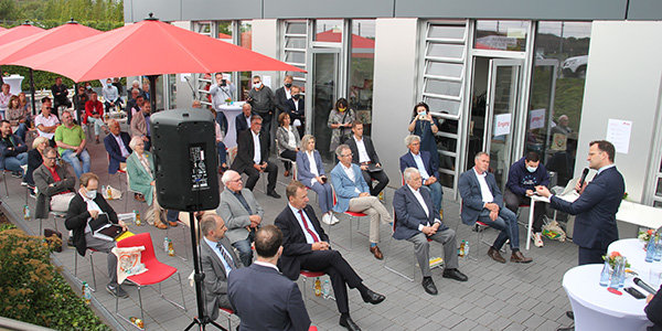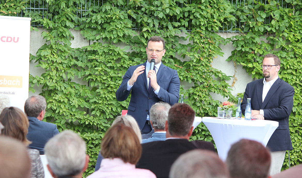 Nur eine begrenzte Anzahl an Personen, Abstände bei den Sitzplätzen, Maskenpflicht und das alles unter freiem Himmel, direkt im Terrassenbereich der Firmen ProContain und Fagsi in Morsbach: Wenn der Bundesgesundheitsminister kommt, sollten Hygiene- und Schutzmaßnahmen natürlich sitzen. Dafür gesorgt hatte die örtliche CDU um ihren Vorsitzenden Thomas Jüngst. Dieser hatte Jens Spahn (CDU) vor etwa einem Jahr beim Bundesparteitag in Leipzig eingeladen. Beide kennen sich noch aus gemeinsamen Tagen bei der Jungen Union. Spahn sagte zu, hätte vor zwölf Monaten aber sicherlich nicht gedacht, dass eine Pandemie das vorherrschende Thema sein wird.