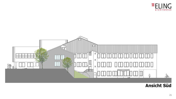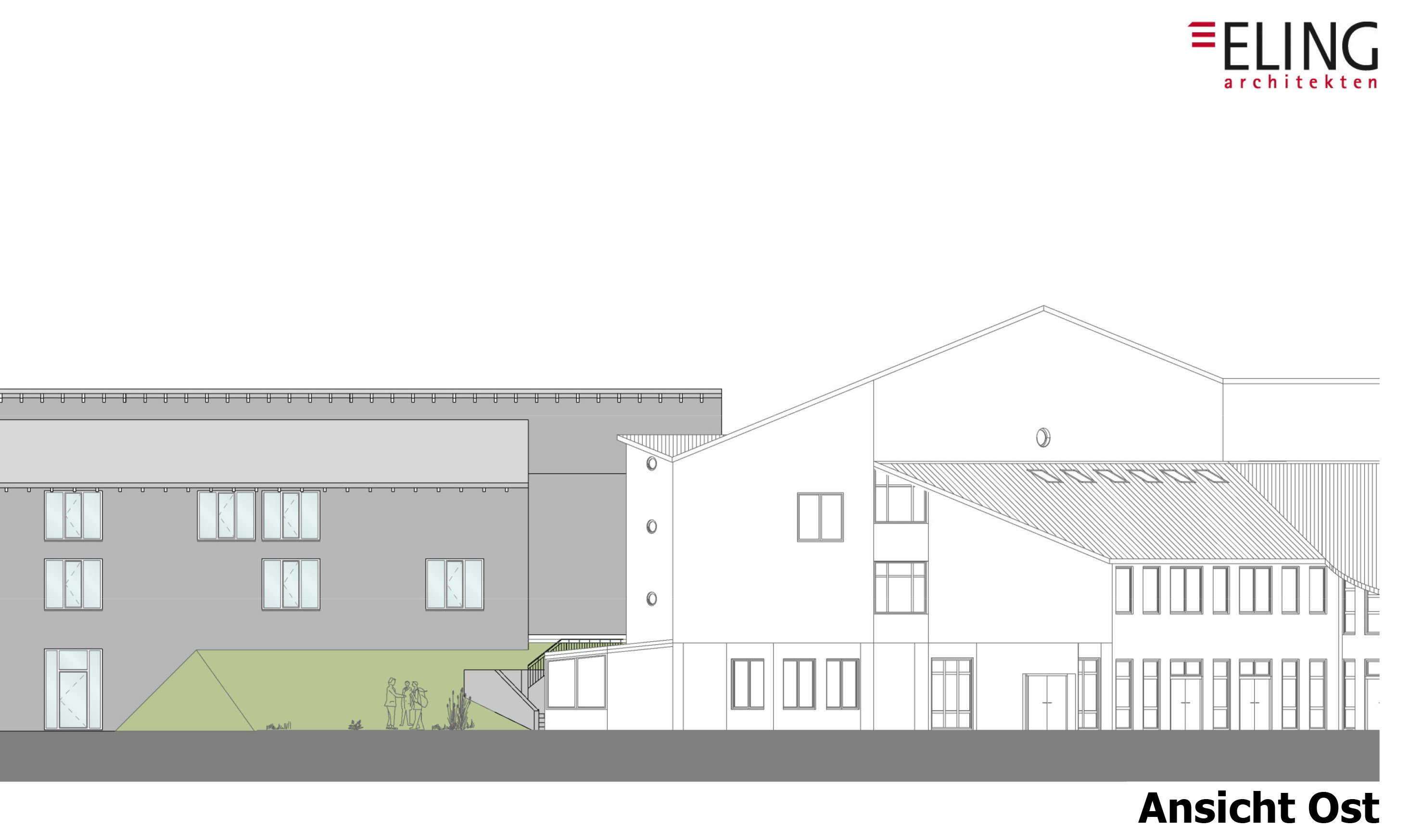 Als Generalunternehmer tritt das Familienunternehmen Goldbeck (gestern vertreten durch Carsten Hense) in Erscheinung, dass auch für die künftige Instandhaltung und Wartung zuständig ist. Für die architektonische Gestaltung zeichnet das Architekturbüro Eling verantwortlich. Christian Eling stellte die Pläne vor, über die finale Auftragsvergabe entscheidet der Rat in seiner Sitzung am 23. Februar. Auf einer Gesamtfläche von 860 Quadratmetern soll auf drei Stockwerken ein Anbau entstehen, der sich an die Flure des bestehenden Baus anschließt. Auch optisch wird das Gebäude unter anderem durch ein Pultdach aus Holz mit Zinkeindeckung an die bestehende Konstruktion aus den 1980er-Jahren angeglichen.