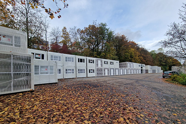 Anders als in den sozialen Medien mehrfach gemutmaßt sollen die Container (Foto), die derzeit auf dem ehemaligen Handelshof-Gelände stehen, nicht für die Massenunterkunft geplant sein. „Wir sind noch weit davon entfernt, offiziell an die Öffentlichkeit zu gehen“, so der Regierungssprecher.