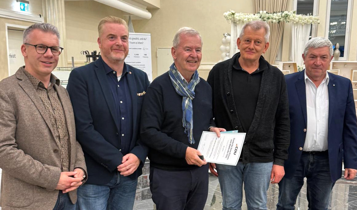 Ein besonderer Moment des Abends war die Ehrung der langjährigen Mitglieder durch den Parteivorsitzenden Hans Peter Scheurer. Hervorgehoben wurde dabei insbesondere Joachim Finklenburg, der für seine 50-jährige Mitgliedschaft in der CDU ausgezeichnet wurde.