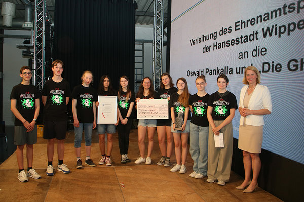 Im Rahmen einer kleinen Feierstunde würdigte der Rat das Wirken von Oswald Pankalla und die Schülergruppe des EvB-Gymnasiums (OA berichtete). Bürgermeisterin Anne Loth überreichte den jungen Akteuren die Ehrenamtspreise und einen Scheck in Höhe von jeweils 807 Euro, der Betrag entspricht dem Alter der Stadt. Aus gesundheitlichen Gründen war Pankalla der Preis zuvor in seinem Zuhause verliehen worden.