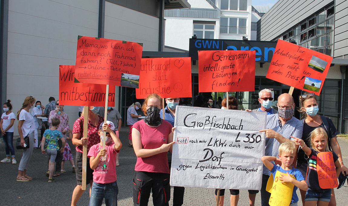 Nümbrecht – Rund 100 Bürger versammelten sich vor GWN-Arena, um Flagge zu zeigen gegen Erweiterung des Gewerbegebiets Elsenroth – Im anschließenden Planungs- und Umweltausschuss nahm das Projekt trotzdem die nächste Hürde.