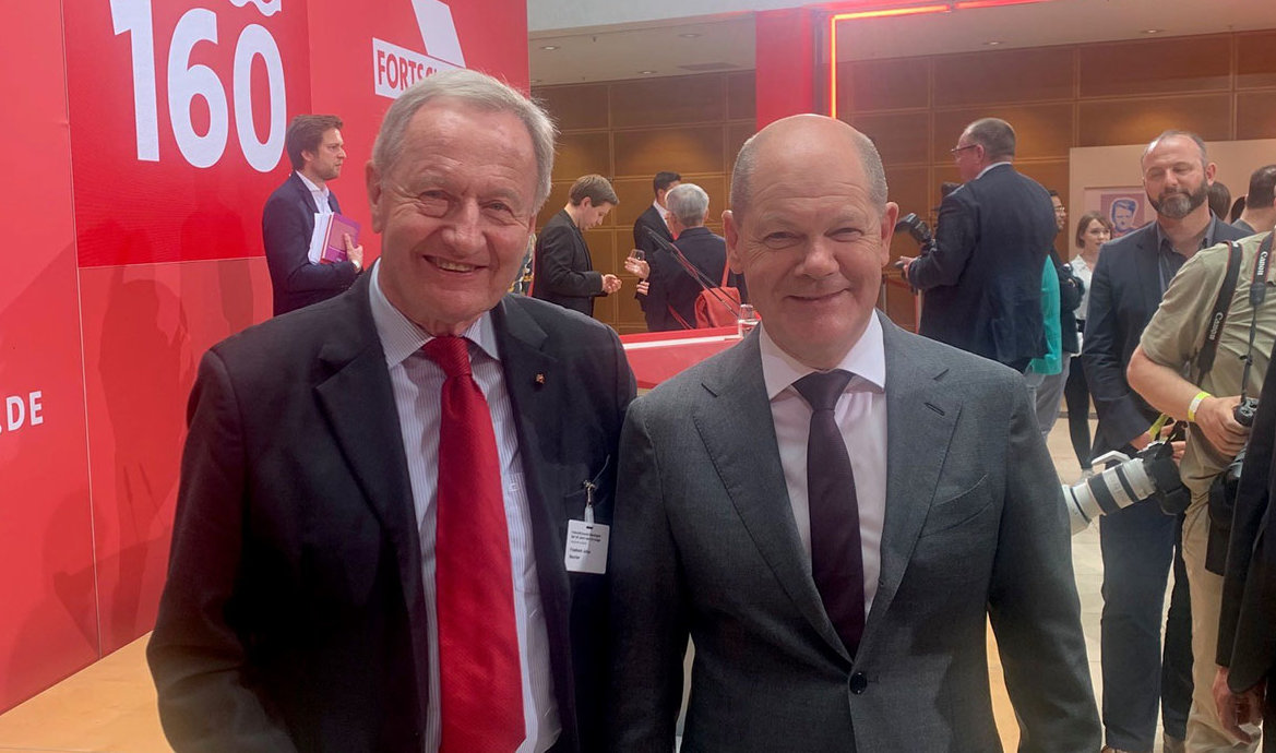 Friedhelm Julius Beucher, Ehrenvorsitzender der oberbergischen SPD und Mitglied des Kreistages, war in seiner Eigenschaft als Präsident des Deutschen Behindertensportverbandes Ehrengast bei den Feierlichkeiten zum 160-jährigen Bestehen der SPD. Im Rahmen dieser zweitägigen Veranstaltung im Willy-Brandt-Haus in Berlin wurde auch der August-Bebel-Preis an Franz Müntefering verliehen. Neben Bundeskanzler Olaf Scholz traf Beucher an beiden Tagen auch viele ehemalige Weggefährten aus der langen Landesvorstandsarbeit sowie der Zeit als Abgeordneter in Bonn und Berlin.