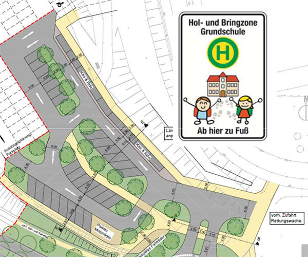Da an der Bücherei am Campus Parkplätze wegfallen werden im Zuge der Campusentwicklung, möchte die Gemeinde die Parksituation und vor allem die Elterntaxis in andere Bahnen lenken. Dabei soll der Kreisel und ein umgestalteter Parkplatz am Festplatz helfen. Es soll ein Einbahnstraßensystem geschaffen werden, sodass die Eltern dort eine Runde machen und ihre Kinder im „Kiss & Ride“-Bereich verabschieden sollen, um sich dann wieder Richtung Kreisverkehr zu begeben. Rund um den Kreisel angesiedelt sind bekanntlich die Rettungswache und das neue Feuerwehrgerätehaus. Die Ausfahrt der Kameradinnen und Kameraden auf die Gouvieuxstraße beim Einsatz liegt dabei ein Stück weiter unten.