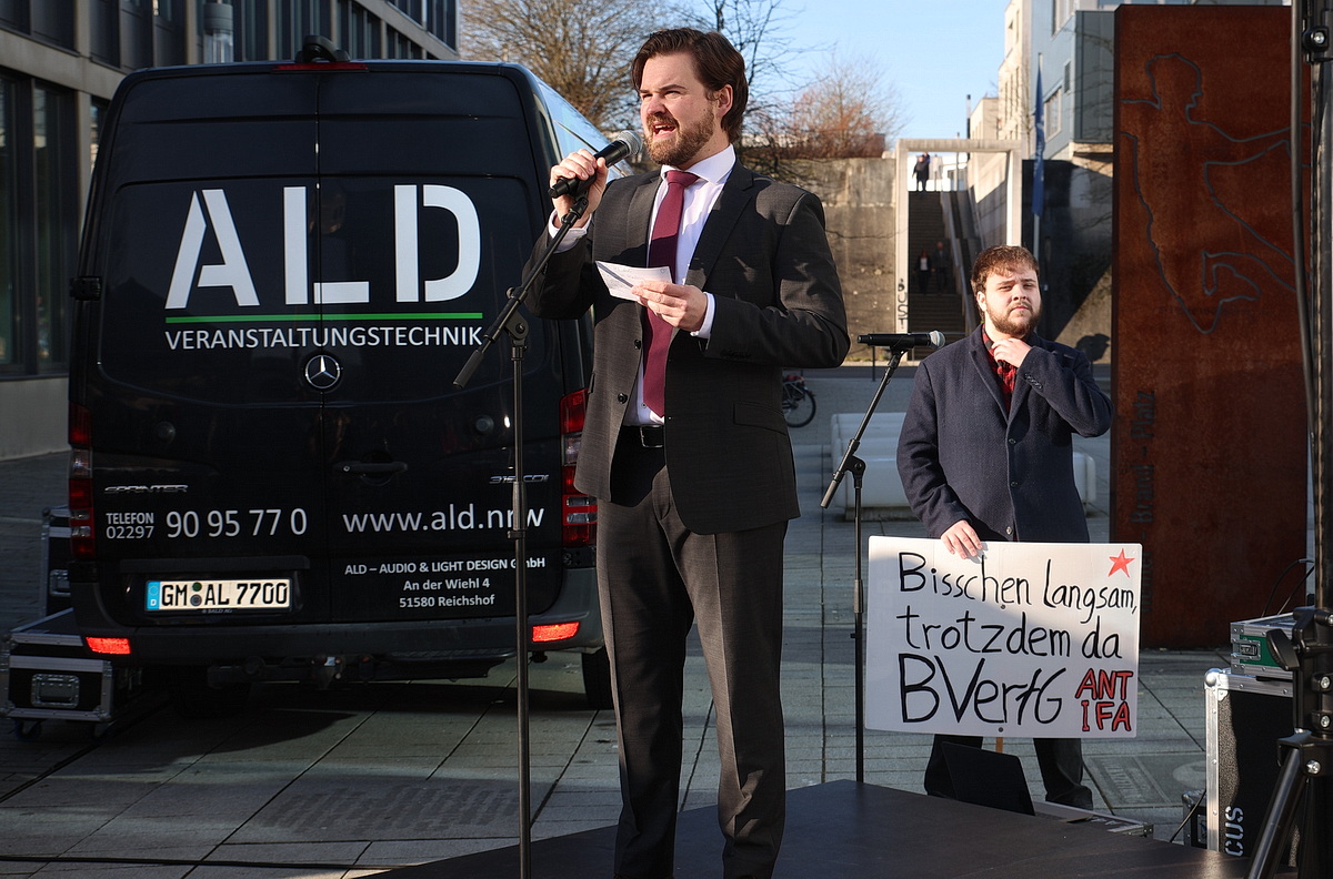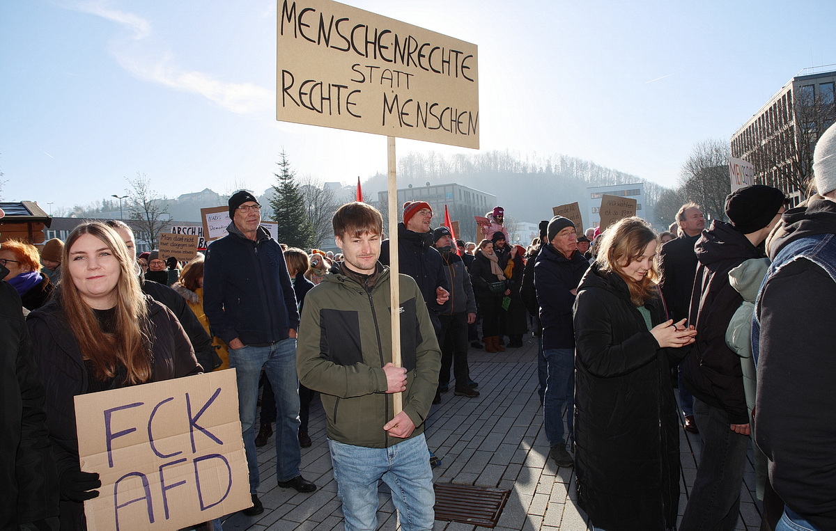 In seiner Begrüßung forderte der stellvertretende Juso-Vorsitzende Ben Neuenfeldt dazu auf, „klare Kante gegen Rechts und Intoleranz“ zu zeigen. Mit Blick auf die kürzliche Zusammenkunft der rechtsextremen Szene in Potsdam zog er Parallelen zur Wannseekonferenz, bei der 1942 das systematische Abschlachten europäischer Juden beschlossen wurde. „Wir werden diesem ekelhaften Gedankengut und dessen Wiederholung entschlossen entgegentreten“, versicherte Neuenfeldt unter bestätigendem Beifall der Menschen. Der designierte SPD-Bundestagskandidat Oberberg charakterisierte Pascal Reinhardt die AfD als faschistische Partei mit völkischer Ideologie, von der sich jüngst sogar die französische Rechtspopulistin Marine Le Pen distanziert habe. Für die Grünen mahnte die oberbergische Bundestagsabgeordnete Sabine Grützmacher, dass die Demokratie durch einen parteiübergreifenden Schulterschluss gegen Rechts verteidigt werden müsse.