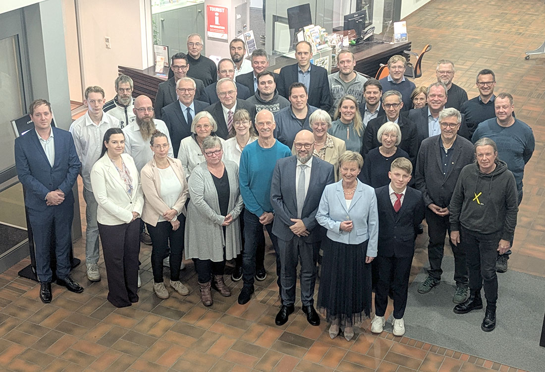 Gemeinsam arbeiten für das Wohl der Gemeinde sowie die Bürgerinnen und Bürger: Diese Maßgabe hat der neue Bürgermeister Nümbrechts Thomas Hellbusch bei der konstituierenden Sitzung des Gemeinderats am Donnerstagabend im Rathaus vorgegeben. Es herrschte viel Interesse an der Premiere von Hellbusch als Redenius-Nachfolger und an der Einführung der Gemeinderatsmitglieder. Das Gremium ist von 32 auf 38 Sitze angewachsen. Während die WGHL nicht mehr angetreten war, konnte die AfD auf Anhieb sechs Sitze für sich beanspruchen - und ist direkt zweitstärkste Kraft. Die erste Sitzung verlief maximal harmonisch: Die Bildung und Besetzung der Ausschüsse ging einstimmig für die Bühne, und auch die Bürgermeister-Stellvertreter Gisa Hauschildt (CDU) und Detlev Michalke (GUD) – beide wurden gemeinsam von CDU, SPD, Grüne, GUD, FDP und Linke aufgestellt – bekamen in geheimer Wahl bei 37 Stimmen nur eine Enthaltung. „Zusammen für Nümbrecht!“, bedankte sich Hauschildt nach der Wahl.