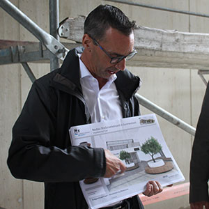 Das Geld soll aber gut angelegt sein in einem „zukunftsfähigen und innovativen“ Gebäude. Bei dem Rundgang sprachen Bauleiter Holger Stülp und Martin Meinerzhagen über die Vorzüge. So soll der Gebäudekomplex – ein Teil ist zwei, der andere Teil dreistöckig - mit einer Fassaden- und Dachbegrünung sowie einer Holzfassade ausgestattet werden. Das Regenwasser soll aufgefangen und für die Toilettenspülung genutzt werden. Die Stromversorgung soll eine Photovoltaikanlage übernehmen, die Wärmeerzeugung erfolgt bivalent über eine Wärmepumpe und einen Gasbrennwertkessel. Die Betonkernaktivierung könne bei der Kühlung des Gebäudes ebenso helfen. Weiter kommt eine moderne LED-Beleuchtung zum Einsatz.
