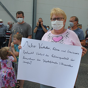 Erst vor wenigen Wochen formierte sich die Bewegung „Rettet die Natur“ in Gerhardsiefen. Seitdem haben die engagierten Bürger es geschafft, viele Mitstreiter beziehungsweise zumindest Unterschreiber hinter sich zu scharren. 250 Unterschriften auf Papier, 400 in digitaler Form, dazu rund 100 Menschen, die dem Aufruf zur Demonstration gefolgt waren – trotz der Hitze und dem Start um 16:30 Uhr. Darunter waren auch Vertreter des Dorfvereins Großfischbach, also aus der Nachbarkommune Wiehl, die mehr Verkehr vor ihrer Haustür fürchten, aber auch Mitglieder von Linken und Grünen.