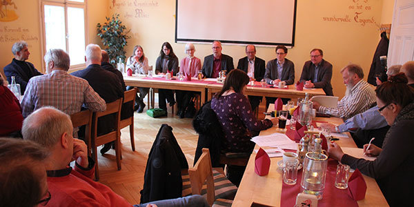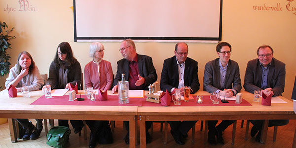 [Bei der Vorstellung im Gesellschaftszimmer des Brauhauses waren auch viele Mitglieder der unterstützenden Parteien vor Ort.]