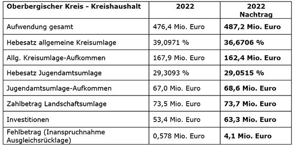 In den Nachtragshaushalt aufgenommen wurden auch die Veränderungen aus dem Gemeindefinanzierungsgesetz 2022. Sowohl die kreisangehörigen Kommunen als auch der Kreis können hiernach mit höheren Erträgen bei den Schlüsselzuweisungen als ursprünglich geplant rechnen. Aufgezehrt werden diese Verbesserungen beim Kreis aber teilweise durch eine ansteigende Landschaftsumlage, die aus dem Kreishaushalt finanziert wird.