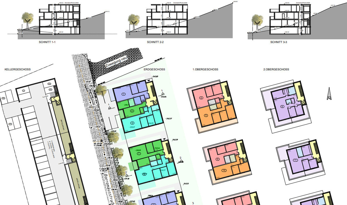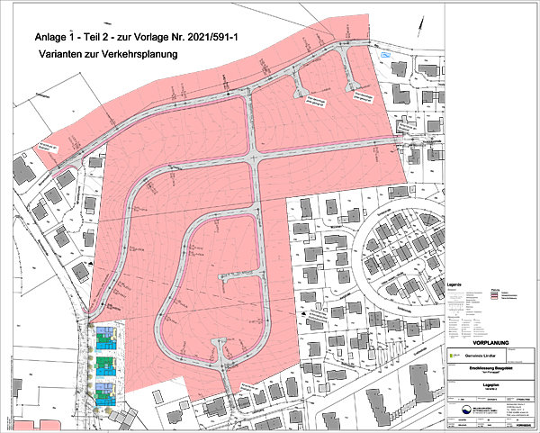 So diskutierte die Politik am späteren Abend zwei Varianten. Einstimmig entschieden sich die Ausschussmitglieder für die zweite Variante. Diese bietet neben der südlichen Zufahrt über die Lessingstraße sowie einer Zufahrt aus nördlicher Richtung auch eine Erschließung über die Borromäusstraße aus westlicher Richtung. Hier soll die Zufahrt oberhalb der drei geplanten Mehrfamilienhäuser möglich sein. Im Osten soll das Baugebiet – bei beiden Varianten – über die Kopernikusstraße erreichbar sein.