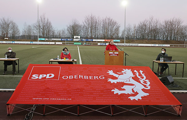 Normalerweise kommen zur Aufstellung ihres Kandidaten die Delegierten aus ganz Oberberg in einem gut beheizten Saal zusammen. Doch die diesjährige Bundestagswahl steht ganz im Zeichen der Corona-Pandemie. In der Tat seien Örtlichkeit und Rahmenbedingungen ungewöhnlich, aber angesichts der aktuell steigenden 7-Tage Inzidenz habe man in vorausschauender Weise bewusst in dieser Weise geplant, sagte der Vorsitzende der SPD Oberberg, Thorsten Konzelmann, am Freitag. Bei Temperaturen nahe dem Gefrierpunkt begrüßte er die Delegierten im Bergneustädter Wilhelm-Bisterfeld-Stadion zur Wahlkreiskonferenz, deren Teilnehmerzahl, ebenfalls coronabedingt, von 80 auf ein noch rechtlich zulässiges Maß von 40 begrenzt worden war.