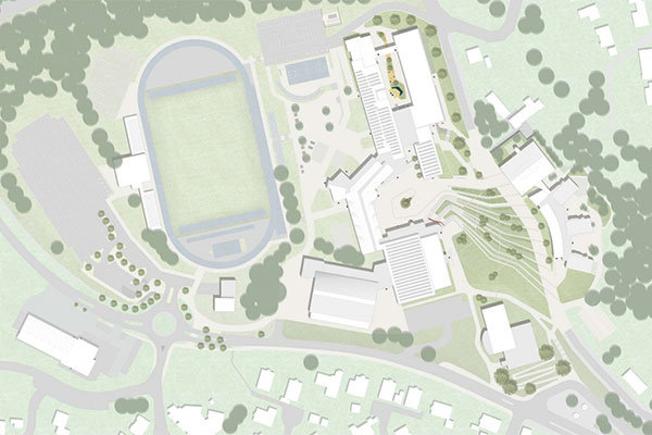 Erstes Ziel des Projekts: Die Verbesserung des Zu- und Abflusses von Verkehren aus dem Bereich des Festplatzes. Die jetzige Parkfläche dort soll umgestaltet werden, sodass man als Elternteil im Einbahnstraßensystem dort eine Runde machen soll, im „Kiss & Ride“-Bereich seinen Nachwuchs verabschiedet, um sich dann wieder Richtung Kreisverkehr zu begeben. Zwar müssten von dort die Grundschüler am weitesten laufen – allerdings handelt es sich dabei auch nur um 360 Meter, auf denen sie keinerlei Verkehrsrisiko mehr ausgesetzt seien, weil es nur über Campusgelände ginge. So hofft die Verwaltung, eine hohe Akzeptanz für die Hol- und Bringzone zu schaffen. Lehrkräfte beispielsweise sollen dann einen anderen Parkplatz nutzen, der in der Nähe des alten SSV-Vereinsheims entstehen wird.