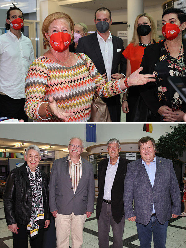 [Oben: Für Michaela Engelmeier ist die SPD die Wahlgewinnerin. Unten: Freuen sich über das Ergebnis der FDP (v.l.): Ina Albowitz, Jörg von Polheim, Dr. Friedrich Wilke und Reinhold Müller.]
