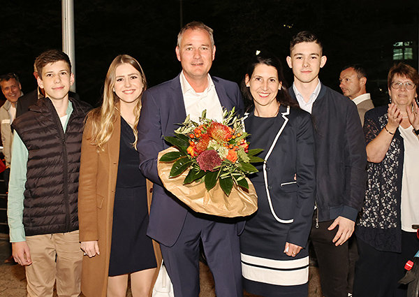 [Wahlgewinner Dr. Carsten Brodesser zusammen mit seiner Familie.]