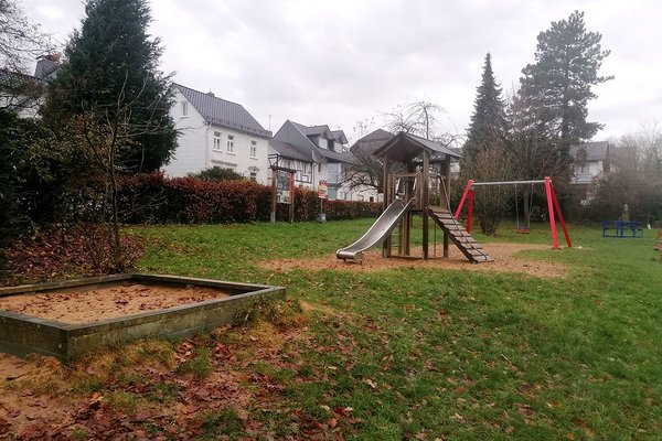 [Im Park Plietz liegt auch ein Spielplatz, der aufgewertet werden soll. Das Spielhaus mit der Rutsche soll erhalten bleiben, allerdings soll die Rutsche künftig nicht mehr Richtung Süden, sondern Richtung Norden stehen und damit – so die Hoffnung der Planer – im Sommer durch die Sonne nicht mehr so heiß werden.]