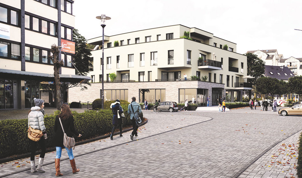 Bei dem viergeschossigen Bau mit Flachdach ist jede Etage von der Hauptstraße aus gesehen nach hinten versetzt, sodass im Verbund mit dem gegenüberliegenden Gebäude keine Häuserschlucht entstehen soll. Geplant sind in dem Neubau zwölf Wohnungen mit jeweils 80 bis 100 Quadratmeter Wohnfläche. Dazu würden die Investoren Gewerbeflächen im Erdgeschoss vermieten. 36 Stellplätze seien in den Planungen vorgesehen.