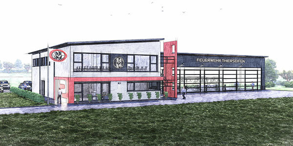 [Grafik: Bautec --- So könnte das neue Feuerwehrgerätehaus in Thierseifen aussehen.]