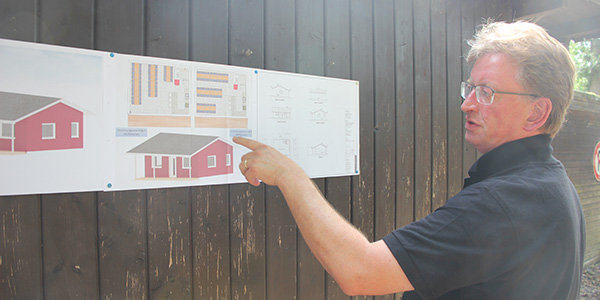 [Bernd Müller leitet das Projekt des Neubaus im Verein. Er zeigt, wie das Dorfgemeinschaftshaus einmal aussehen soll.]