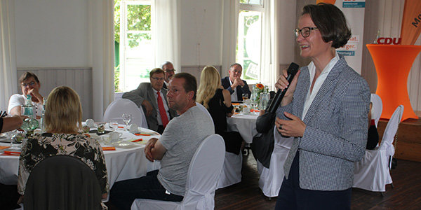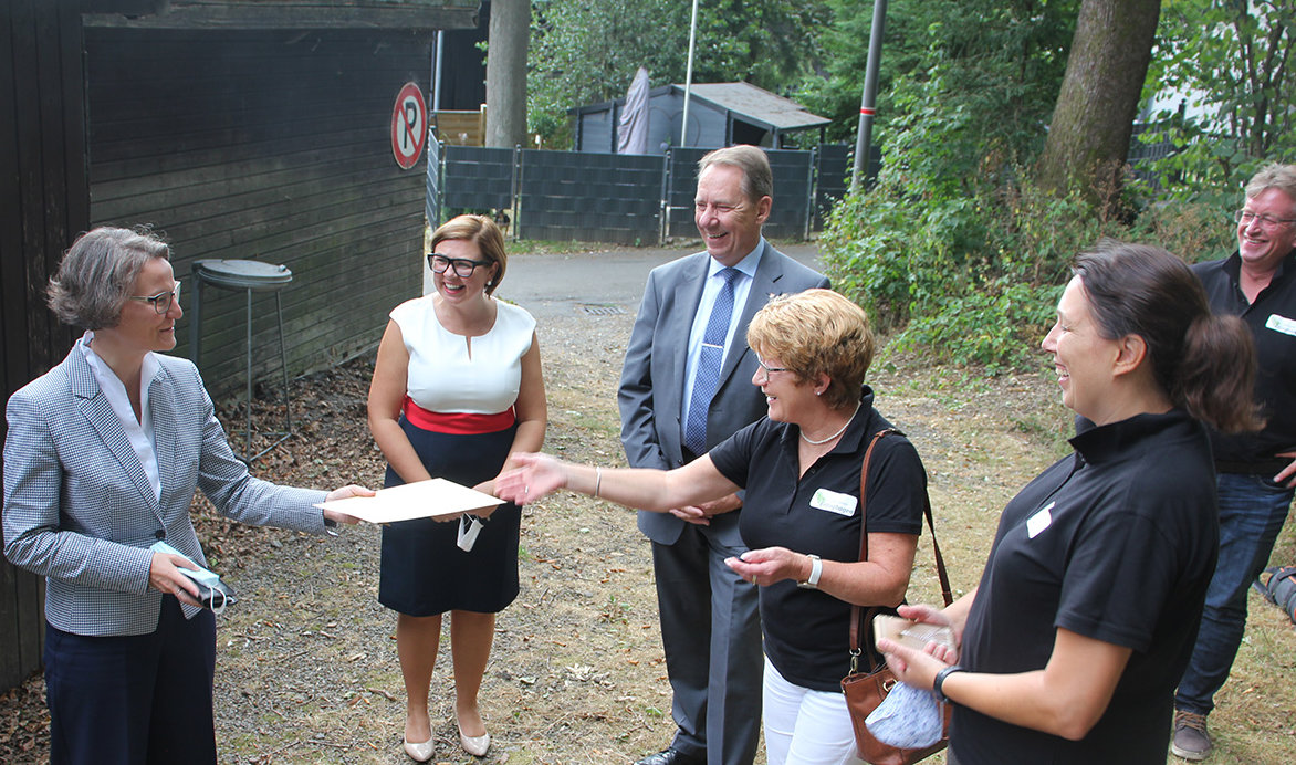 Marienheide – NRW-Heimatministerin Ina Scharrenbach (CDU) übergibt in Erlinghagen Förderbescheid für Bau eines neuen Dorfgemeinschaftshauses – Gespräch mit Ehrenamtlichen im Schlosshotel Gimborn.