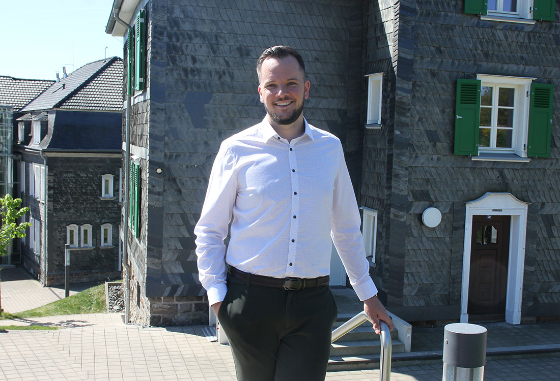 Bürgernähe, eine transparente Kommunikation, das verständliche Erklären von Entscheidungen, diese Schlagworte nennt Dillon Weber immer wieder, wenn er über seine Kandidatur spricht. Tatsächlich musste der frischgebackene Vater einer Tochter nicht lange überlegen, als Helzer und Solbach über ihn sprachen als möglichen Kandidaten. Weber ist Oberberger durch und durch, kommt ursprünglich aus Wallerhausen, lebt inzwischen in Waldbröl und sitzt dort auch seit 2020 im Stadtrat. Nach seiner Zeit auf der Gesamtschule Waldbröl studiert er Maschinenbau an der TH Köln am Campus Gummersbach, er arbeitet bereits während dieser Zeit im InnovationHub. „Dort lernte ich schon die Innovationskraft im Kreis kennen.“ Später wechselt er zu ALHO, plant als Projektingenieur das Werk in Lichtenberg mit. Nun ist er bei der ALHO-Tochter Procontain Leiter der Produktionsplanung.