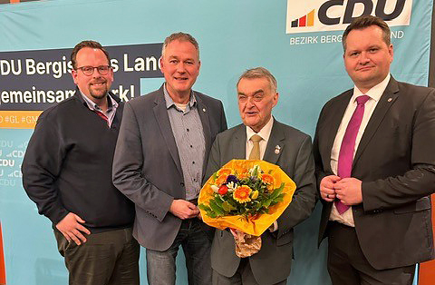 Der CDU Bezirksverband Bergisches Land hat einen neuen Vorstand: Die Delegierten wählten NRW-Innenminister Herbert Reul erneut zu ihrem Vorsitzenden. Aus den Reihen der oberbergischen Christdemokraten wurden Thomas Jüngst aus Morsbach und der Landtagsabgeordnete Christian Berger aus Wipperfürth in den Bezirksvorstand gewählt. Der Abend im Bürgerhaus Bergischer Löwe in Bergisch Gladbach diente der bergischen CDU auch gleichzeitig als Wahlkampfauftakt für die bevorstehende Bundestagswahl. Der Bezirksverband ist die politische Ebene zwischen den Kreisverbänden und dem Landesverband Nordrhein-Westfalen. Neben Oberberg gehören auch der Rheinisch-Bergische Kreis, der Kreis Mettmann, das Städtedreieck Remscheid, Solingen und Wuppertal sowie die Landeshauptstadt Düsseldorf dazu.