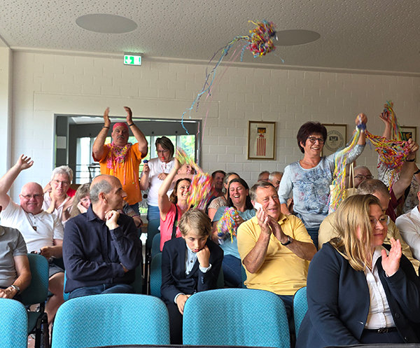 [Mit Luftschlangen und Tillerpfeifen feierten die Befürworter des Bades die Rettung.]