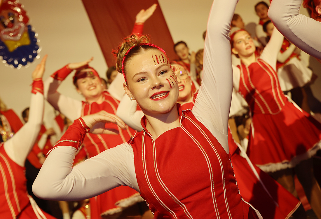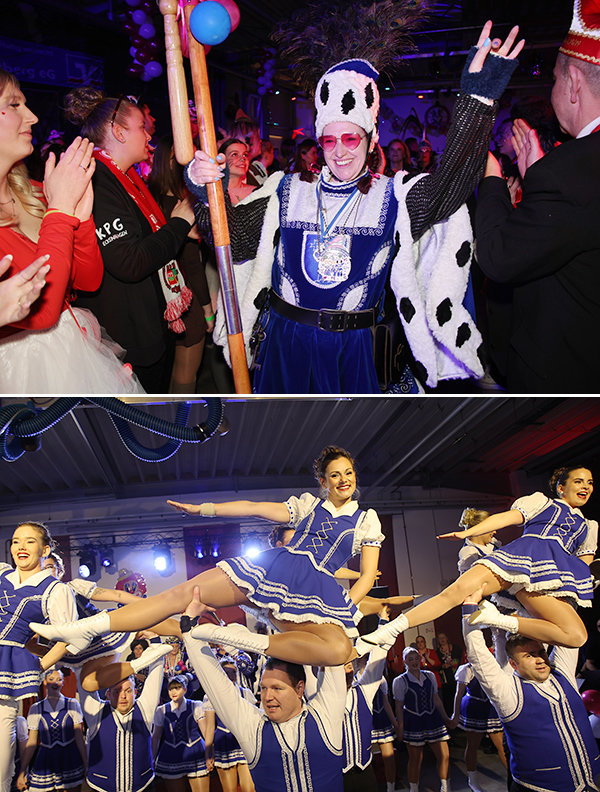 Schlag auf Schlag folgten die befreundeten Gesellschaften mit ihren Tollitäten und Garden. Der Ründerother Karnevalsverein reiste mit Prinz Norman I. und Prinzessin Melanie an, gefolgt von der Torwache Ründeroth, die mit ihren akrobatischen Einlagen für Begeisterung sorgte. Das Dreigestirn des Karnevalsverein Bielstein mit Prinz Conny I., Bauer Melli und Jungfrau Nico brachte samt Bielsteiner Tanzmäusen den Saal zum Kochen. Prinz Conny zeigte sich trotz des närrischen Dauerprogramms bestens gelaunt: „Voll cool, dass wir hier sein können – auch nach einem anstrengenden Weiberfastnachtstag. Wir fühlen uns noch gut und die Stimmung hier ist mega, Hammer!“