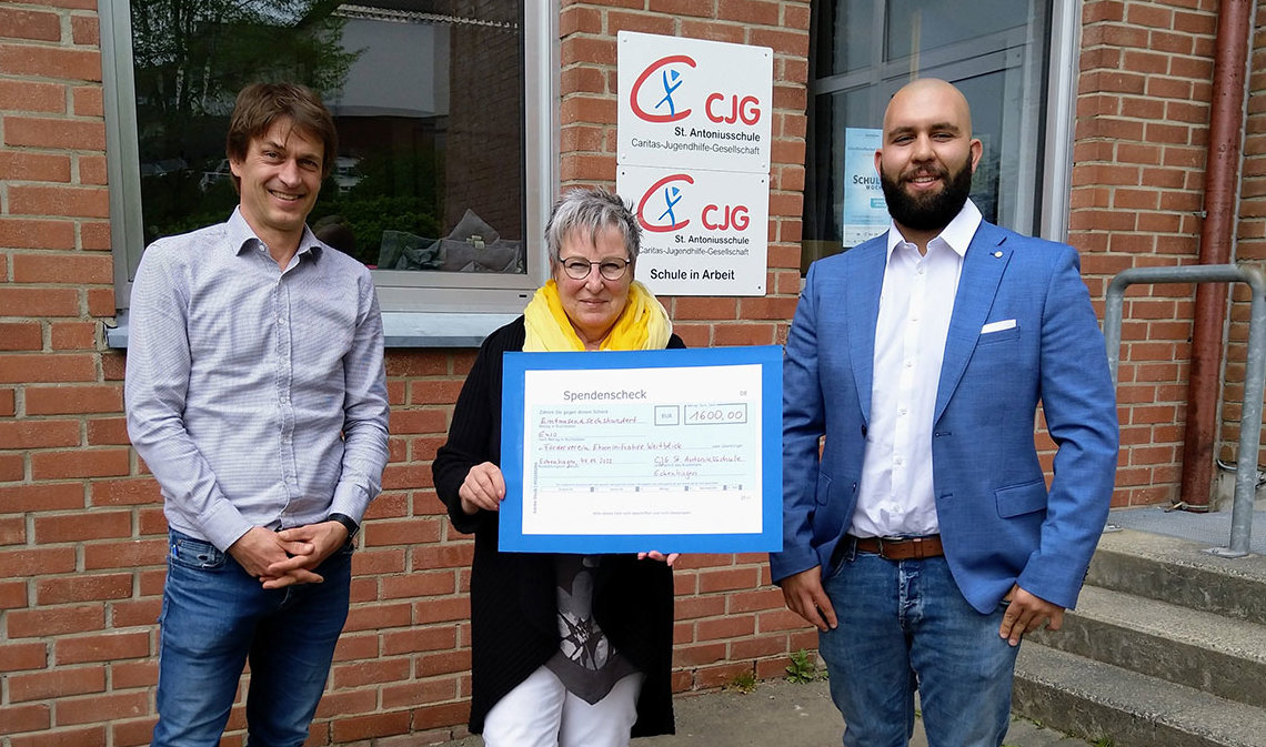In den Tagen und Wochen nach Beginn des Krieges in der Ukraine haben die Schüler der Förderschule CJG St. Antoniusschule eine große Betroffenheit und das Bedürfnis, etwas tun zu müssen. Nach einem Austausch über verschiedene Ideen und Möglichkeiten, entschlossen sich die Kinder und Jugendlichen laut einer Mitteilung, den Erlös ihres Bistroverkaufs über mehrere Wochen zu sammeln. Zudem luden sie die Erwachsenen der gesamten Kinder- und Jugendhilfeeinrichtung CJG St. Josefshaus in Eckenhagen, zu der die CJG St. Antoniusschule gehört, zur Unterstützung der Aktion auf. Außerdem malten sie fleißig Bilder mit Symbolen der Unterstützung und des Friedens, deren „Verkaufserlös“ ebenfalls gesammelt wurde. In knapp drei Wochen seien so 1.600 Euro zusammengekommen, mit denen die Schüler die Flüchtlingsarbeit der Ehrenamtsinitative „Weitblick“ in Hückeswagen unterstützen möchten. Die Scheckübergabe fand kürzlich statt.